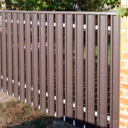 Рассчитать стоимость забора из металлического штакетника вы можете обратившись к нам по телефону. Выезд и замер бесплатный. Цвет штакетника — на выбор.