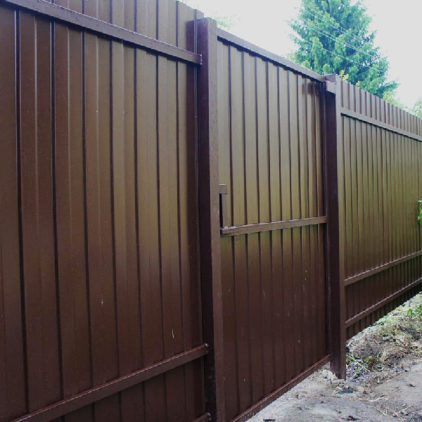 Забор «Люкс» из оцинкованного профлиста с полимерным покрытием одной стороны. Отличный забор для дома и дачи. Цены казаны с установкой — оплата после установки забора.
