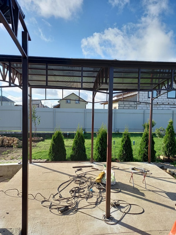 Навес из сотового поликарбоната, 3,5х4,5 м., ДНП Северное, август 2020, стоимость - 64 000 руб.
