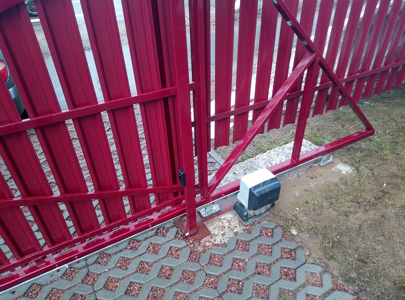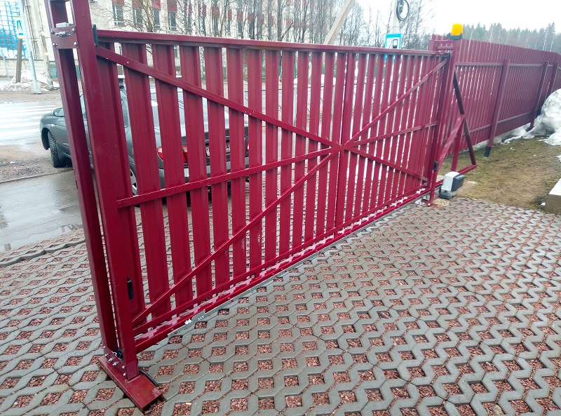 Ворота откатные с калиткой и автоматическим приводом САМЕ. Монтаж выполнен на винтовые сваи, поселок Рощино, в феврале 2019 г., стоимость - 82 350 руб.